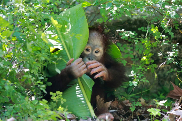 芭蕉叶是猩猩“黑妞”夏日出行的必备