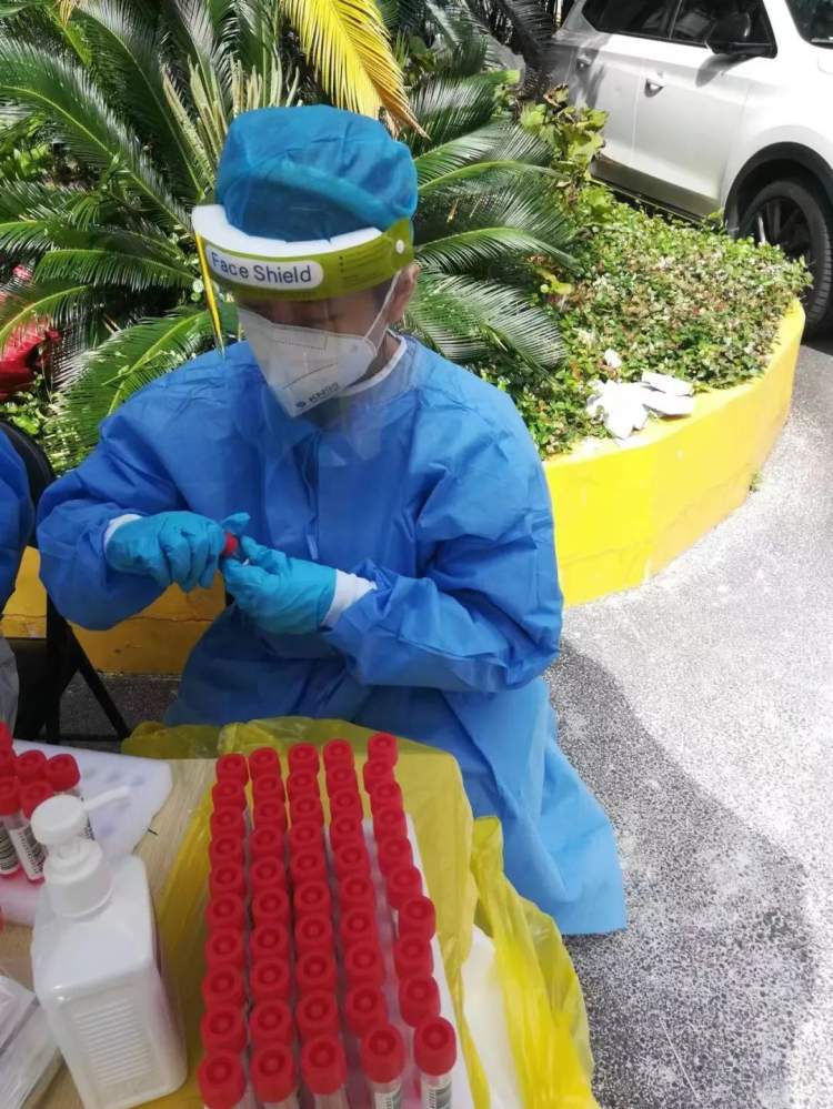 在常态化疫情防控阶段,他们在学习和工作之余,又通过了严格的培训,化身核酸采样员。成为了全能志愿者“大白”,不惧高温,守护长风,在家乡的土地上,书写“靠谱”青年的使命担当。