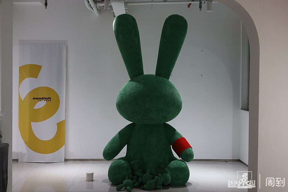 园区内的“初代网红”正安于一隅,它是一只名为“柏拉兔”的大大的绿色的兔子。小型的玩偶可以购买。