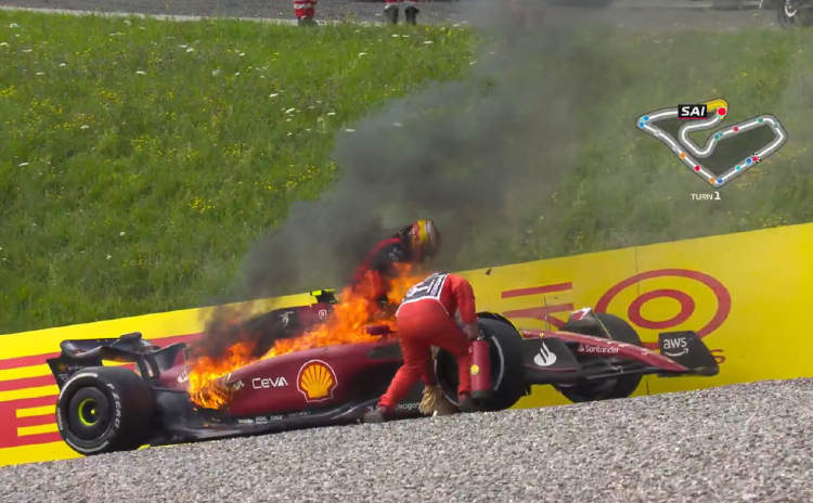 上一站奥地利站,法拉利车手塞恩斯就在正赛中因为发生了赛车起火的事故退赛。