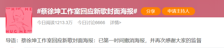 声明中,蔡徐坤工作室表示,与设计公司及创作者在合同中明确提出原创及版权要求,发现问题后工作室高度重视,第一时间责成设计公司自查,未得到对方有效回复,“我方当即撤消此款海报。本工作室对未能严格审核封面海报物料诚挚致歉。工作室始终重视原创和对知识产权的保护,对侵犯知识产权的行为决不姑息。”