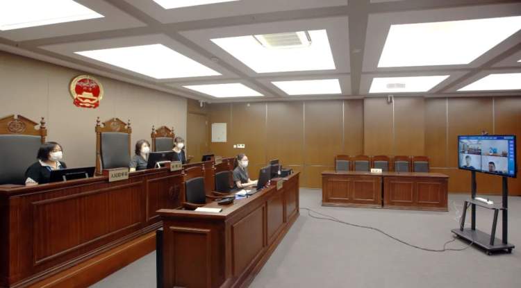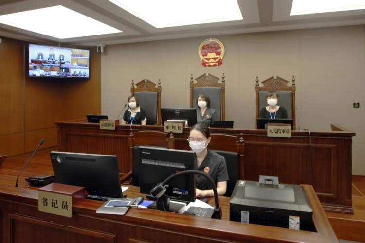 ■ 图为2022年7月28日被告人蔡某某非法吸收公众存款案远程视频开庭现场