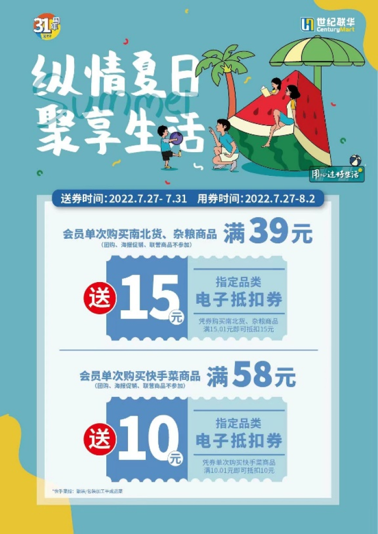 在五五购物节中,百联集团旗下联华股份从7月27日 —— 8月16日,将推出纵夏生活节,推出进口商品、生鲜、日配、干货杂粮、酒饮、清洁个护等各种优选商品。