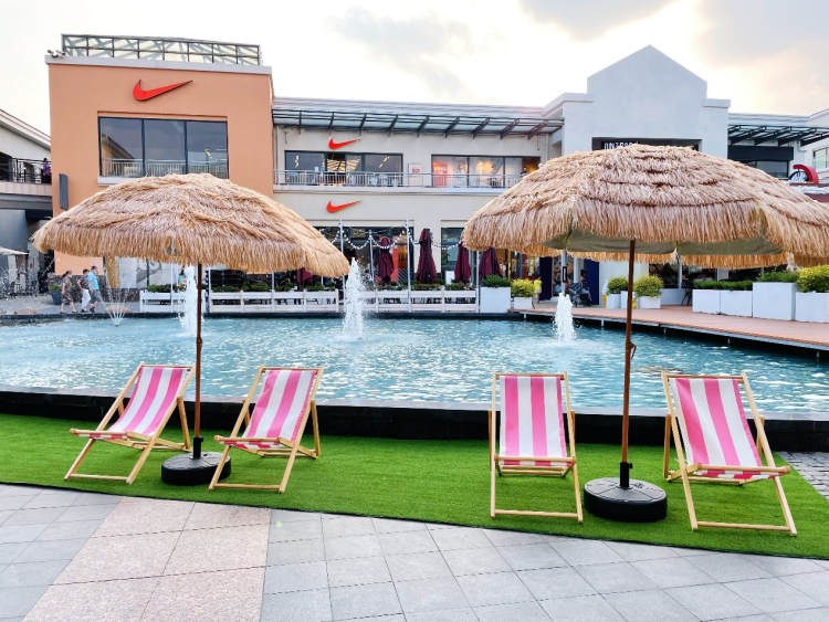 7月,百联奥特莱斯广场(上海·青浦)开启“炫彩·夏”购物季,结合露营装备、沙滩椅、遮阳伞、火烈鸟泳圈等夏季元素,打造出“露营角”“宠物角”“度假角”“音乐角”等多个“微场景”,构成奥莱夏季专属度假地图。时尚与艺术交融,提升消费者购物体验,为其带去“转角不期而遇”的惊喜,打造夏季炫彩奥莱。