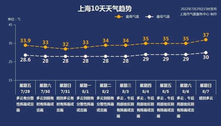 在持续9天的申城今夏第二轮高温热浪后,今天本市最高气温33.9℃,终于、终于离开了高温线!