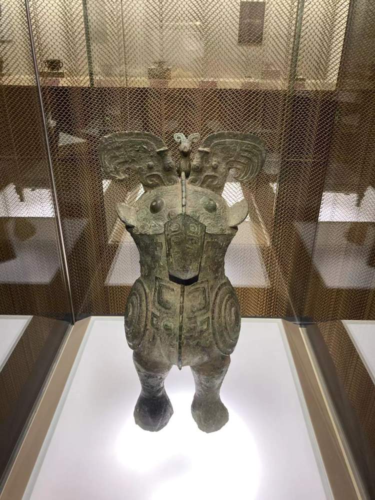 本次展览入口处展示了三件跨度达1000多年、分别属于夏商周三代文明的青铜器,让人们对中国青铜器文化的演进和三代文明的不同特点有一个直观的了解。比如夏代晚期网格纹鼎,被称为“中国第一青铜鼎”,其器型和纹饰与河南龙山文化晚期的陶鼎一脉相承,青铜鼎的出现,是王权礼制萌生的象征。