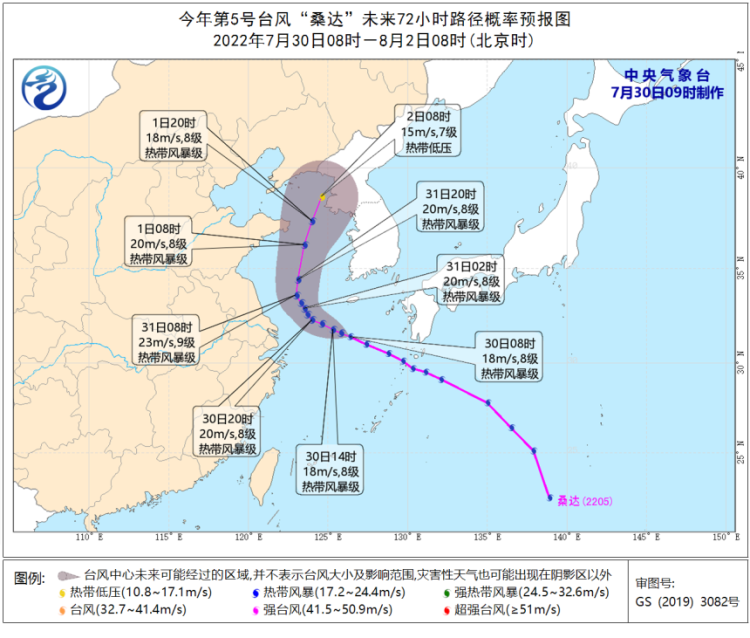 今年第5号台风“桑达”(热带风暴级)昨天夜间已进入东海,