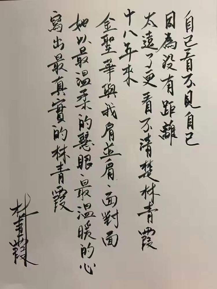 他透露,林青霞写作很认真,字字斟酌,有时废稿撒满一地。十八年能磨出三本文集,也难为了她。