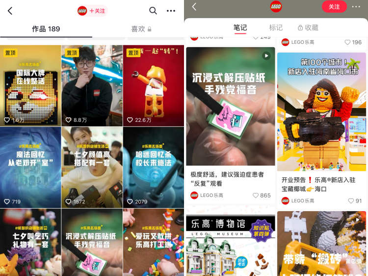 在抖音和小红书上的乐高页面