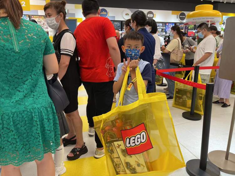 7月30日早上10点57分,海口万象城的乐高授权专卖店迎来了正式开业后的首批顾客。大家提前一个多小时就在店外排队等候,不少小朋友早早就种草了自己心仪的套装,进店之后第一时间就奔向了相应的柜台。
