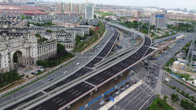 今天下午,杨高中路(中环立交——金海路)改建工程跨线桥主线正式通车。通车的跨线桥主线起点为台儿庄路,终点至杨高北路,全长共计1.4公里。工程建成后,预计会极大缓解该路段因车流量大、上下班高峰造成的拥堵。