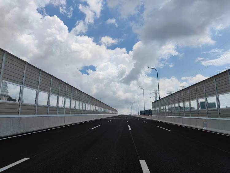 此外,由于工程周边涵盖了诸多社区,为进一步提升文明施工标准,项目部采用4米高的声屏障,在兼具美观的同时,最大程度减小了车辆通行时的噪音污染,充分体现城市施工环保的理念。