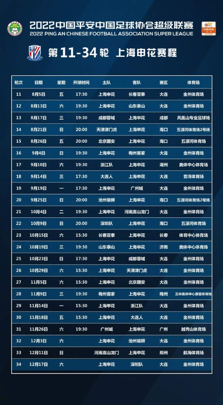 昨天傍晚,中足联筹备组公布了联赛第11轮至34轮的赛程。在酷热的8月份,申花先打两个主场,紧接着踢3个客场,预计总的飞行距离达到8000公里。