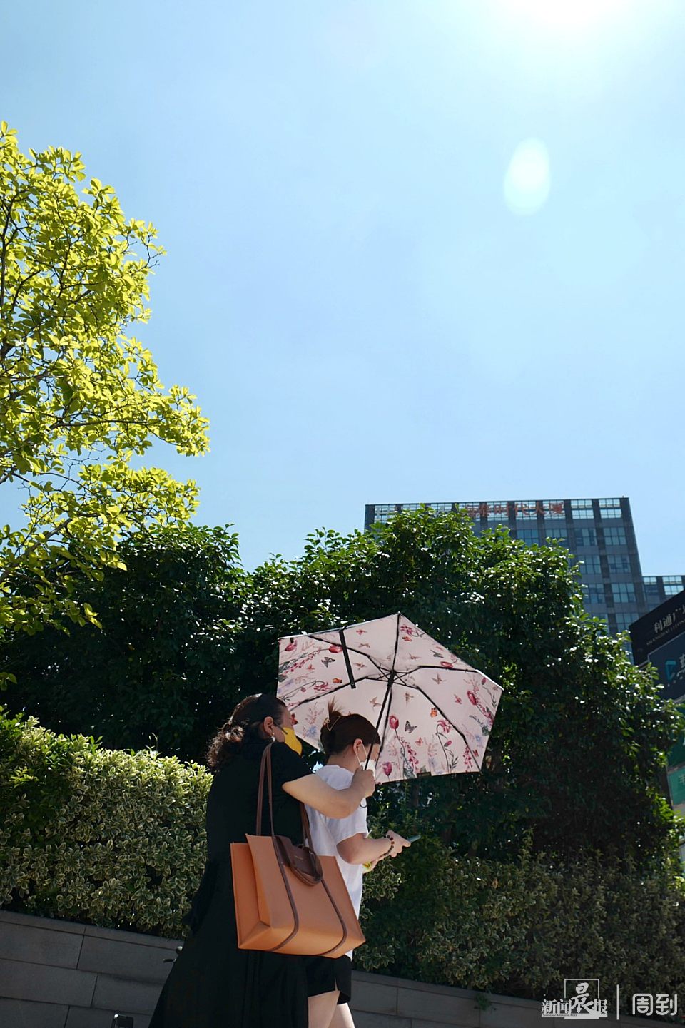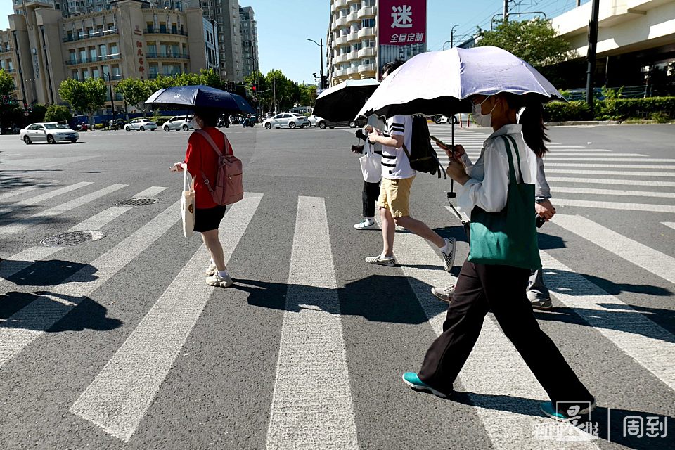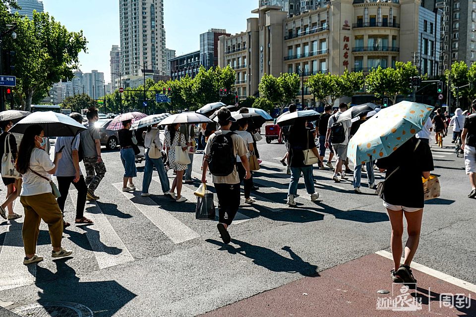 今天上海空中无云,火辣辣的太阳直烤地面 | 晨镜头 任国强 2022-8-04 来源:周到上海 今天申城晴空万里,天上没有一丝云彩,太阳把地面烤得滚烫滚烫,一阵风刮来,从地上卷起了一股热浪,使人感到燥热难受。中午12时10分上海中心气象台更新高温黄色预警信号为高温橙色预警信。 大太阳底下,路人打着遮阳伞,在路口等红绿灯的市民是躲在树荫下或电线杆后,以躲避烈日的炎烤。 来源:周到上海 作者:任国强 赞一个 (0)