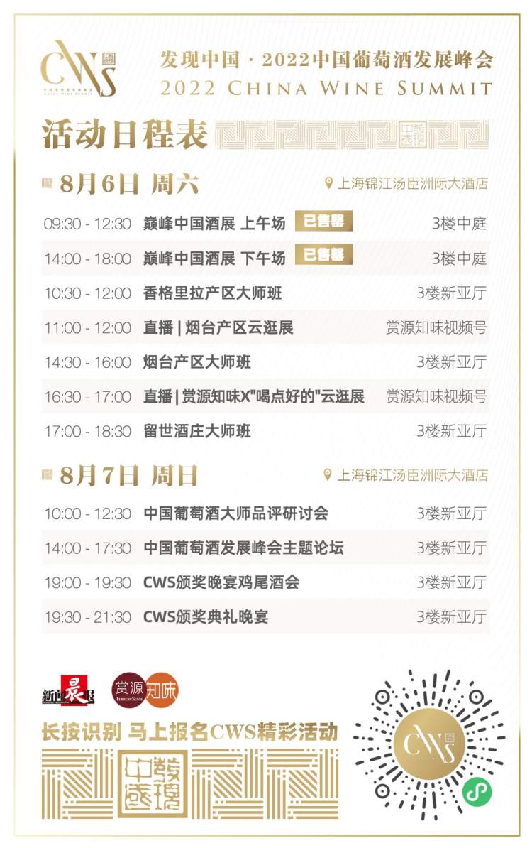 2022年8月6-7日,第五届“发现中国 · 中国葡萄酒发展峰会” (简称:CWS中国葡萄酒峰会)将在上海盛大开幕,上海报业集团新闻晨报,赏源葡萄酒评论TerroirSense Wine Review和知味葡萄酒杂志·教育TasteSpirit强强联手,为你奉上这场不可错过的中国葡萄酒年度盛事。
