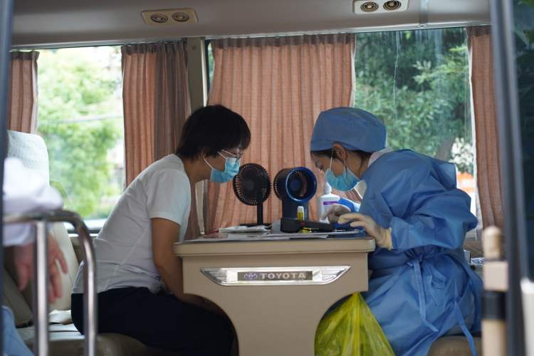 对于行动不便、高龄老人等需要上门服务的人群,专班医护人员会在接种专场结束后,根据前期排摸名单挨家挨户上门接种。他们顶着高温,拎着沉重的疫苗存储箱和医疗器械,在居委干部的引导下,上门提供疫苗接种服务,并严格按照接种流程,测体温、健康咨询、评估、留观等环节一个也不落。