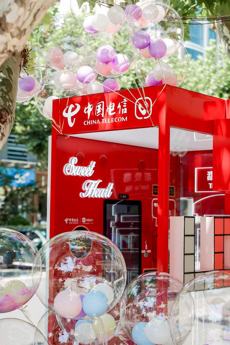 今天是七夕节,由上海电信打造的全国首个智慧服务公话亭——“甜爱云厅”,现身浪漫氛围满满的甜爱路街头,为市民提供一键叫车、一键接入手语服务、地址查询等便民智慧服务,还为情侣们准备了各类小礼物及情侣靓号以供挑选,引来路人围观拍照。