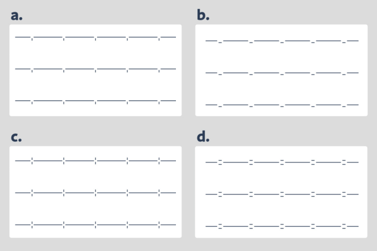 按照设计心理学的原理,这样的书写间隔线利用人的错觉,把并不相连的直线看成一条直线,减轻打开笔记本时的压迫感和视觉压力。与此同时,长横线和短竖线的组合便于书写者写出一格一字。