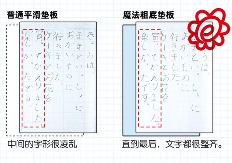 RAYMAY藤井的这款垫板,有一面是有凸起小点的,有一面是光滑的。表面上的凸起小点可以帮助低年级小学生准确地写出想写的字符,由专业医师监督设计。