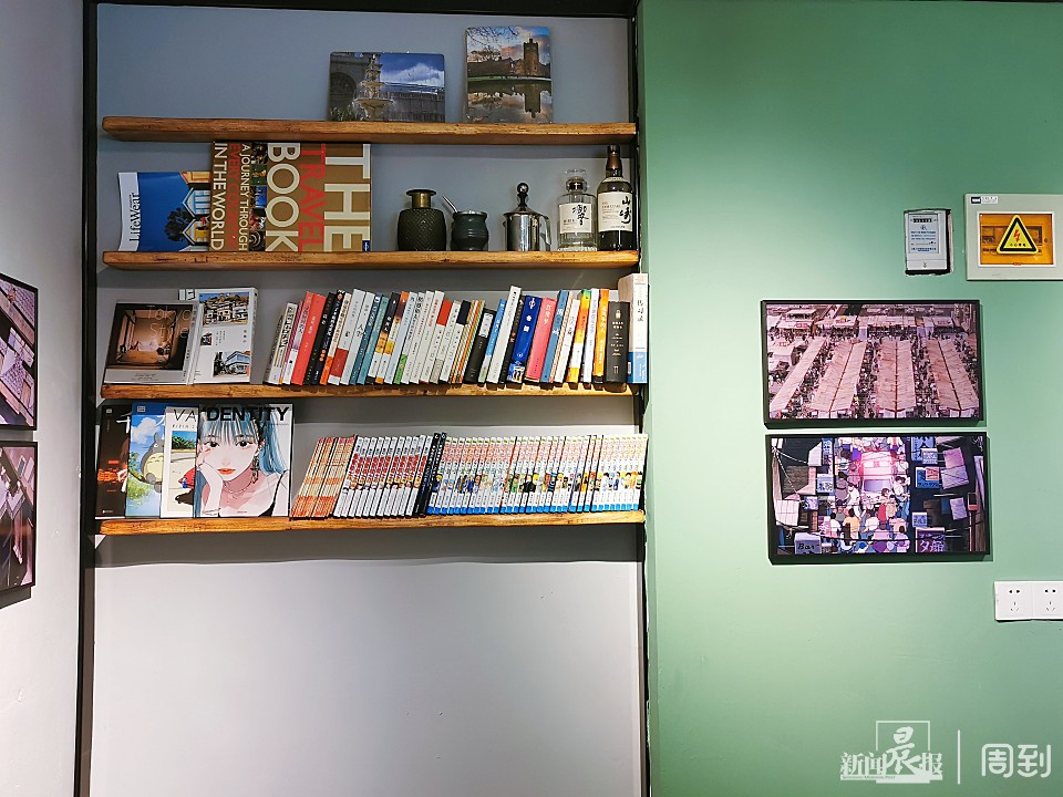 “我喜欢一切好听的音乐,而不只是现在的音乐。”咖啡师马也曾经是一位TVC制片人,对艺术有着独到的把控。书架上全系列的《新世纪福音战士》《美少女战士》,墙上挂满了上世纪八九十年代日漫的经典画面,屏幕上放映着日本昭和时期的电影,这些都是出自他之手。