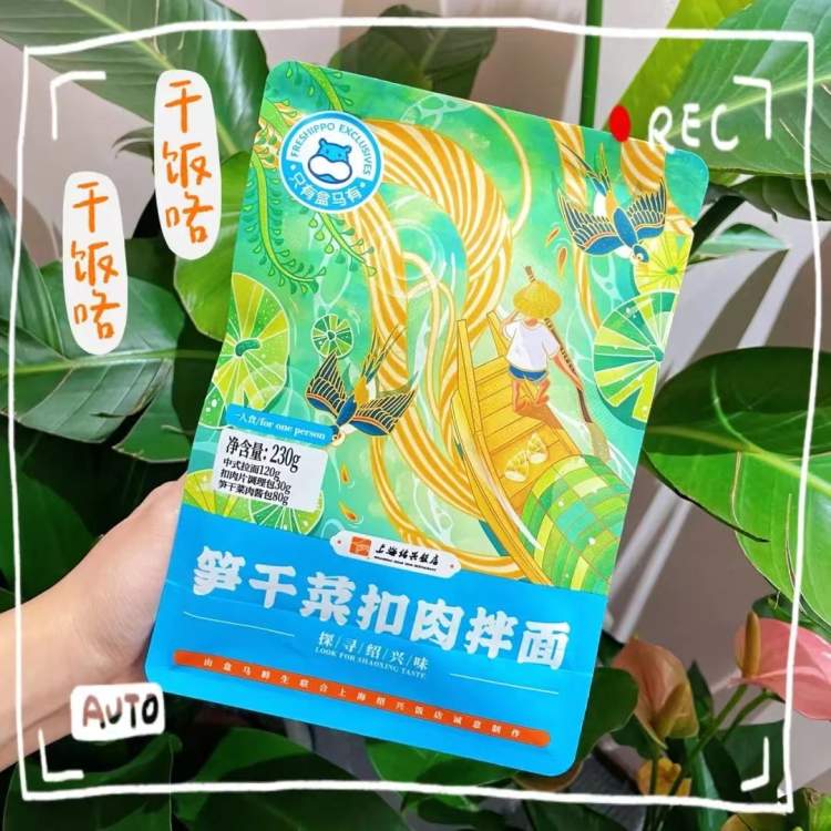 为了打造鲜明地域特色,“上海味道”在产品端和食品企业进行了差异化研发:由沪上知名餐饮品牌绍兴饭店与顶新集团旗下餐饮零售化平台集食美,为盒马独家研发的一款特色冷鲜面——“笋干菜扣肉拌面”,首批已正式在盒马全线上市。这款产品出自上海味道“嗨100榜”入榜餐厅——绍兴饭店名菜“笋干菜扣肉”,是上海味道平台推动餐饮零售化发展的成功案例。