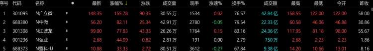 8月5日,A股市场5只新股上市,包括4只注册制新中微半导、广立微、江波龙、盟科药业和深市主板的弘业期货,当天这5只新股齐齐上涨,成为一道风景。全天发行价最高的N广立微(301095)股价大涨155.78%,中一签可赚4万多元;江波龙换手率最高,全天83.16%,看来8成投资者选择落袋为安;唯一临停的是弘业期货,收盘44%涨停,全天换手率仅2.79%。