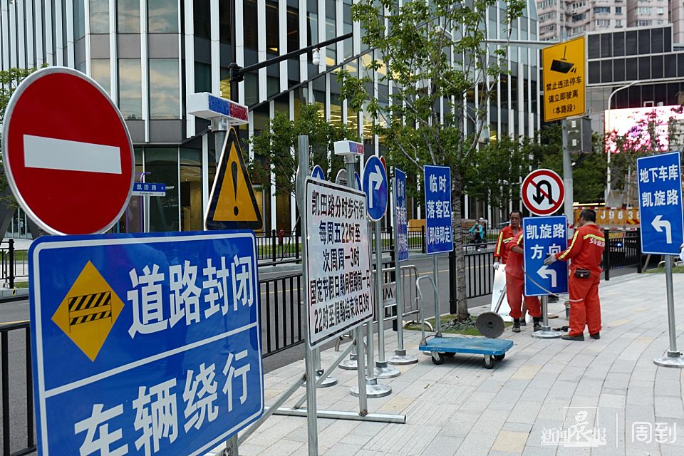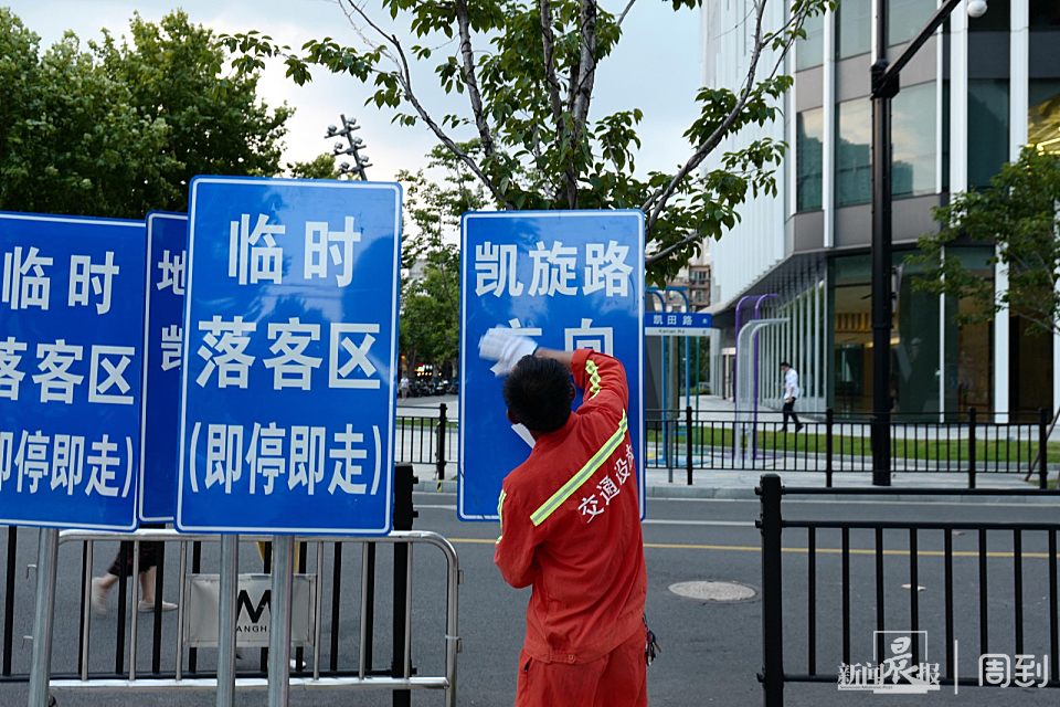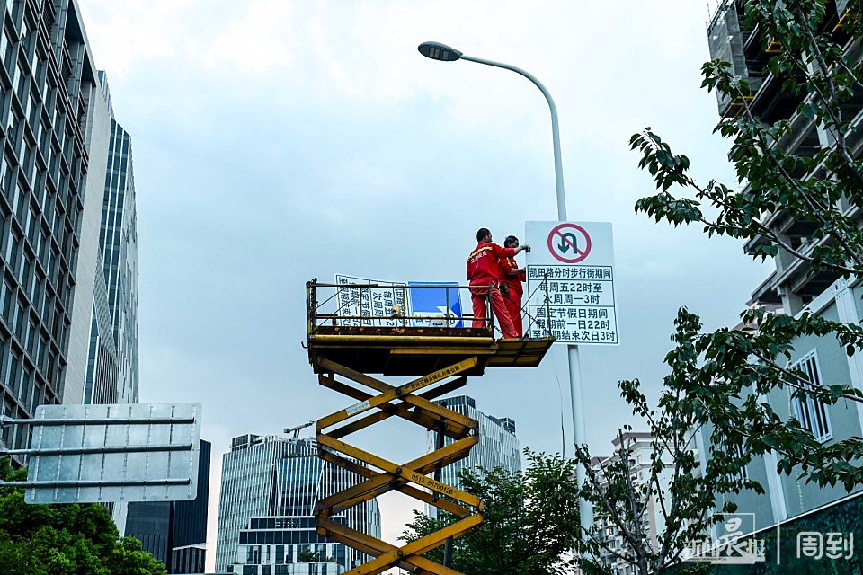 今晚22时开始,长宁区凯田路将实施分时步行街。傍晚5:30左右记者在凯田路上看到,工人们正在安装分时步行街指示牌。