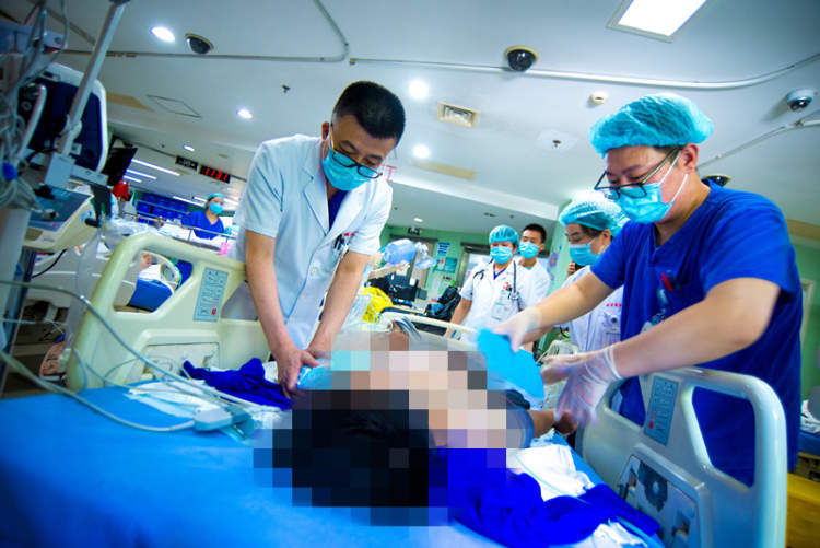 瑞金医院副院长陈尔真、急诊科主任毛恩强主持抢救,护理督导景峰到场指导护理,在急诊ICU医护人员的配合下,用冰毯、冰袋降温,进行全方位的生命支持,并实时监测酸碱平衡和电解质状态,经过1个多小时抢救,患者情况有所好转,体温、血压、血氧等各项生理指标逐渐趋于正常。由于患者高热状态导致了包括肝脏、肾脏、血液系统、心脏等在内的多器官损伤,病情较重,之后需要继续严密的监测及诊治。