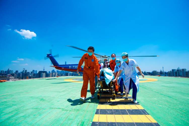 今天上午9时,一位31岁的舟山渔民出现高热伴抽搐症状,且意识模糊,接到求救后,东海救助局第一飞行队即刻与瑞金医院取得联系,迅速展开空中救援任务。11点12分,救援直升机平稳降落在瑞金医院的停机坪。
