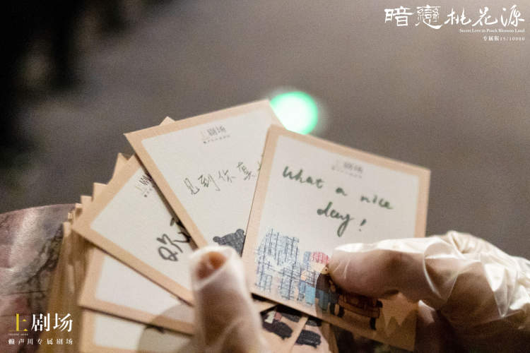 为了迎接许久不见的观众,上剧场的同事们手写了五百多张欢迎卡,每一句话都是想对在一次次延期中依然耐心等待,带着勇气来到上剧场的观众们说的话。