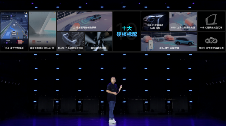 借助五大世界一流智能科技,博越L实现五大核心领域的革新普及,并以首发吉利银河OS Air版、13.2英寸中控竖屏、10.25英寸数字液晶仪表、L2级智能驾驶辅助系统、540°上帝之眼透明底盘、手机APP远程控制、航天级7系铝合金防撞梁、178LX数字律动LED大灯、赛车级刹车系统和一体式硼钢热成型门环这“十大硬核标配”,确立起核心领先优势,重新定义了智能SUV市场的准入标准。