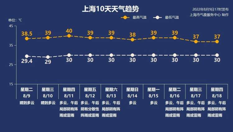 申城今天依旧是高温打卡的一天,晴到多云,南到东南风3~4级,相对湿度85%~45%,气温在29~39℃。