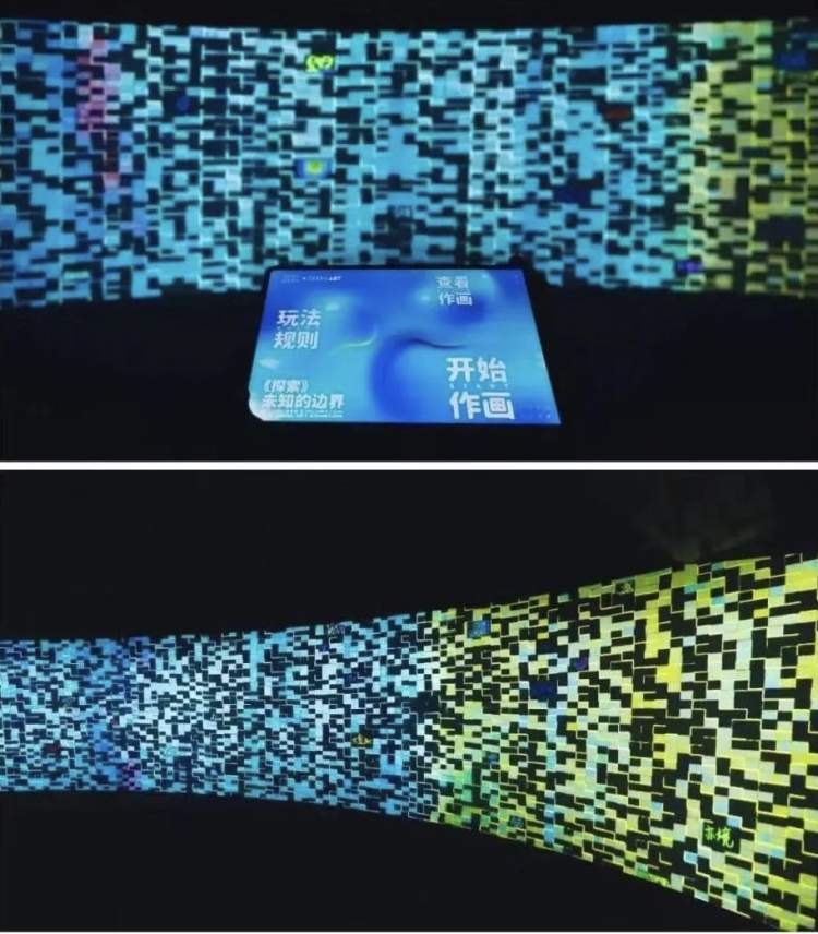 展览现场还设有《探索》互动区,观众可现场进行绘画并选择上传投屏于展墙,使其作品亦成为展览内容的一部分。