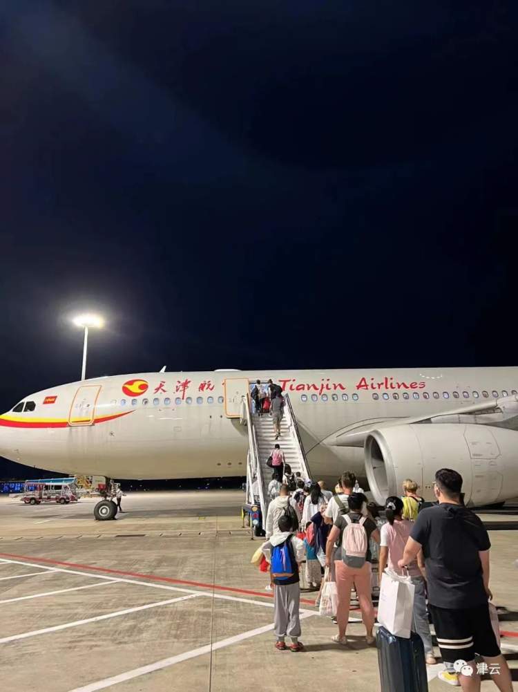 8月13日3:02,天津航空GS7002航班载着215名三亚滞留旅客从三亚凤凰机场平稳起飞返回天津。据悉,这是自8月9日海南省新冠肺炎疫情防控指挥部发布《关于滞留海南旅客离岛返程有关事宜的公告》后的第一个离岛返津的包机航班。刚刚,航班到达天津滨海国际机场,他们平安返津!