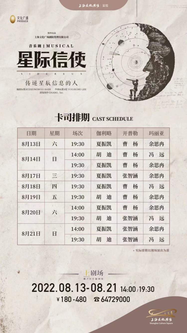 从某种程度来说,剧组也在以实际行动致敬了伽利略追求真理过程的坚毅,完成了传奇故事的讲述。今晚开始,到上剧场,一起感受音乐剧里的星辰大海吧!