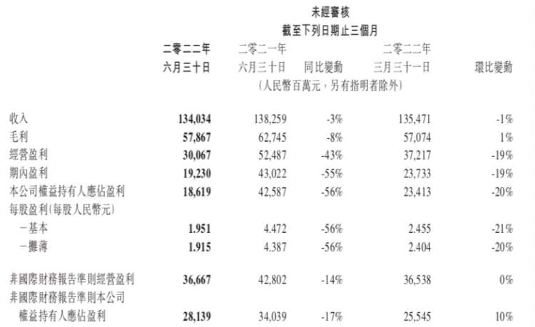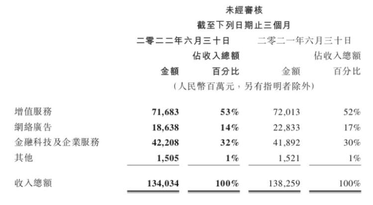 8月17日,腾讯集团发布截至二零二二年六月三十日止三个月及六个月的未经审核的财报。