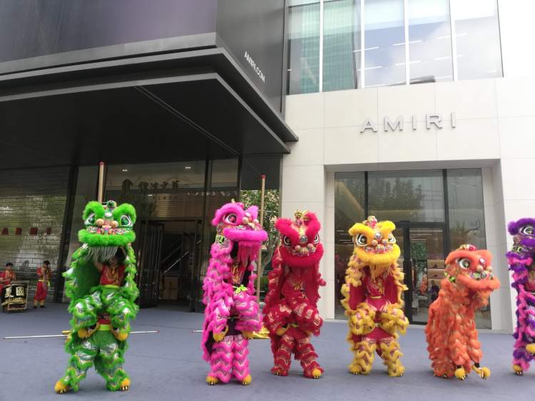 上午10点多,记者走在南京西路的恒隆广场时,已经能听到有锣鼓声传来。记者走到锦沧文华广场门口发现,原来是商场为开业特意请来了舞狮队。来自香港的夏国璋龙狮团在门口表演舞狮,小伙子们表演卖力,市民们看得津津有味。