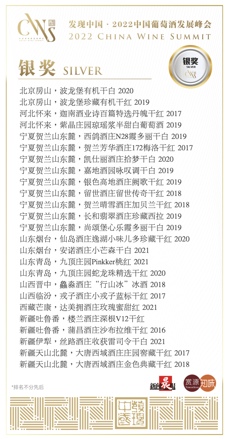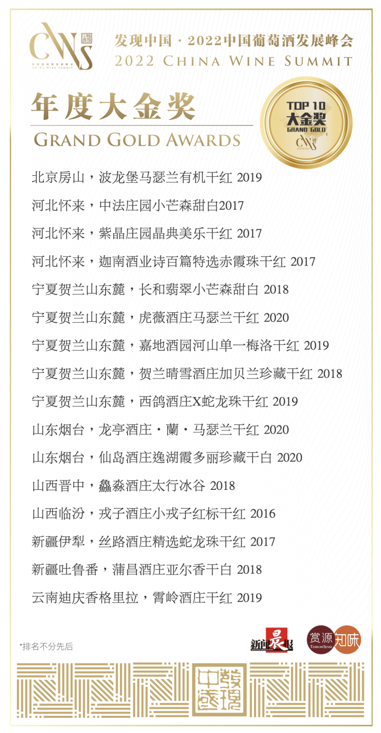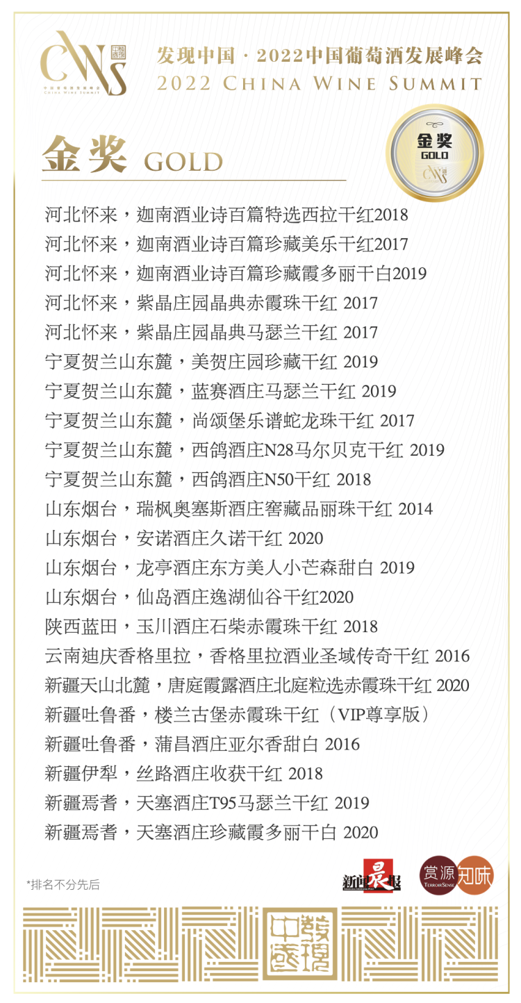 其中25款被选为发现中国·2022中国葡萄酒发展峰会“银奖”,22款被选为“金奖”,16款被选为年度“大金奖”。