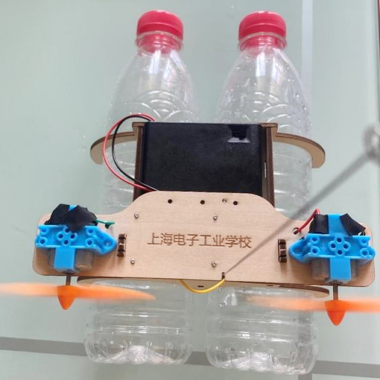 如果说工艺美术代表着传统手艺,那上海电子工业学校的“水上滑翔机”项目则更具现代气息。不仅如此,这个项目还需要孩子自己手机空矿泉水瓶,再结合学校的材料包进行制作。