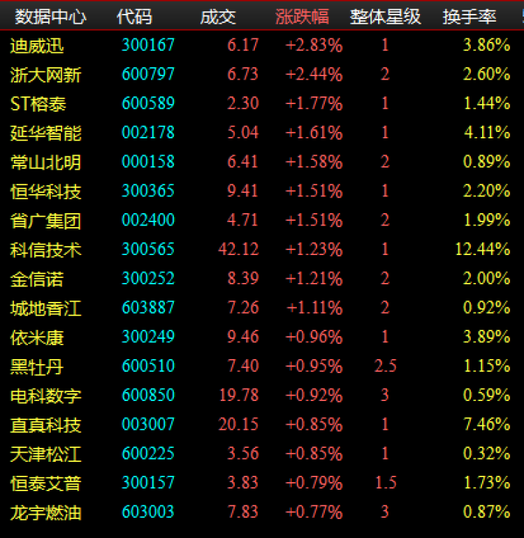 今天沪深两市双双低开,盘中电力板块拉升,乐山电力再度触及涨停,惠天热电、上海电力、迪森股份、龙源电力、通宝能源、新筑股份等跟涨;虚拟现实板块走强,中广天择涨停,宝明科技、奥拓电子、大华股份、隆利科技、中南文化等跟涨。午后,燃气板块拉升,德龙汇能2连板,九丰能源、四川美丰、首华燃气、蓝焰控股、洪通燃气等跟涨;盐湖提锂板块活跃,盛新锂能涨停。最后沪市上涨0.60%,报收3277点;创业板上涨1.64%,报收2779点。两市成交额逾万亿元。