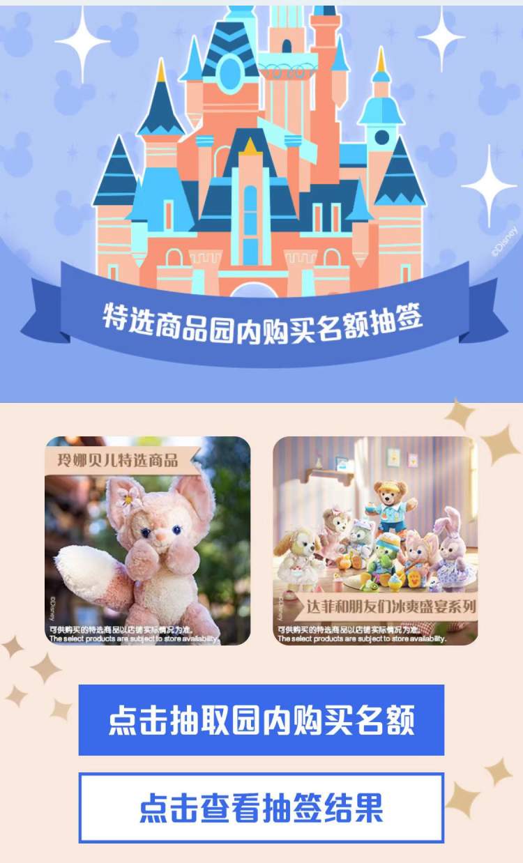 除了线上商店,上海迪士尼度假区还于8月15日在乐园内推出了“特选商品园内购买名额抽签”的新购买方式,针对玲娜贝儿、星黛露等需求量较高的热门商品,为乐园内的游客提供更多购买到心仪商品的机会。