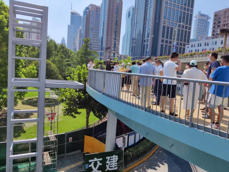 各方人士昨天下午现场观摩天桥情况