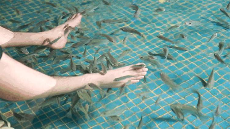 在游客众多的商业街,我们经常看常见一些小鱼足疗按摩店,只要顾客将脚泡入水中,一群小鱼就会过来咬去你脚上的死皮。