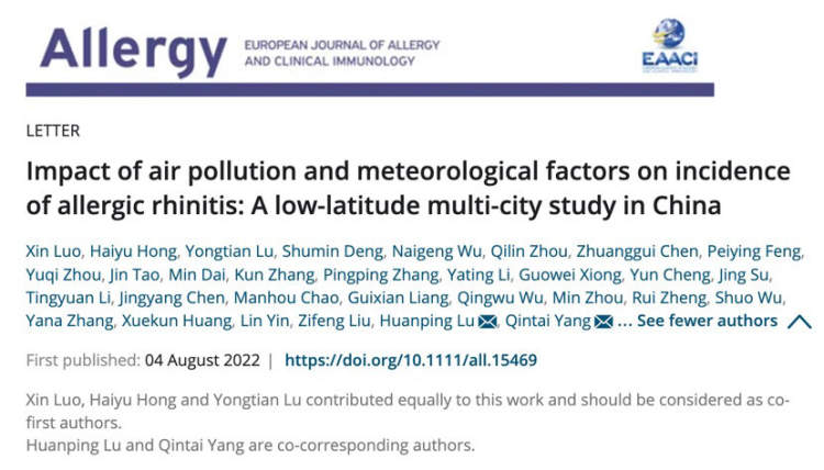 研究人员通过分析粤港澳大湾区代表性城市广州、深圳、珠海医院过敏性鼻炎门诊数据,通过六种常见空气污染(二氧化硫、二氧化氮、PM2.5、PM10、臭氧、一氧化碳)以及气象条件(温度、湿度、风速等)与医院过敏性鼻炎门诊量相关性分析发现,空气污染物增加、湿度过低、风速过大、温度过高或过低,都会导致过敏性鼻炎门诊量的增多。