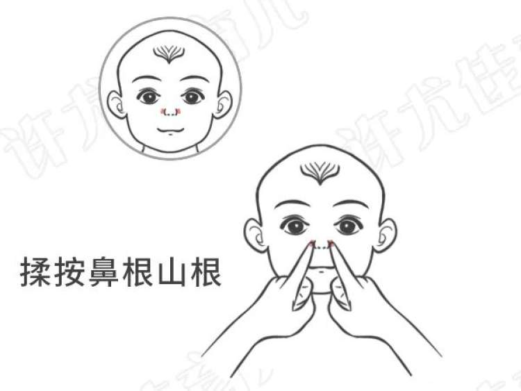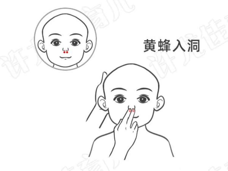 4、尝试小儿推拿:对3岁以内更为有效。儿科医生许尤佳推荐了小儿推拿的方法:食指上下搓鼻梁两侧1分钟;鼻根山根部两侧,食指揉按1分钟;鼻翼两旁迎香穴揉按1分钟;黄蜂入洞,用食指和中指轻轻伸入孩子鼻孔,快速揉按1分钟。