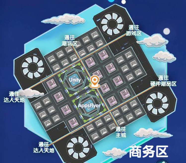 从主城区可以通往游戏区、商务区、硬件区等其他展区。