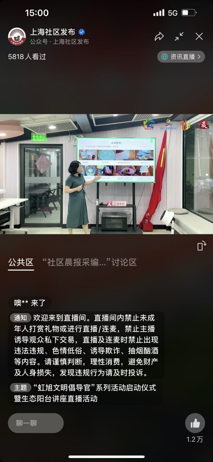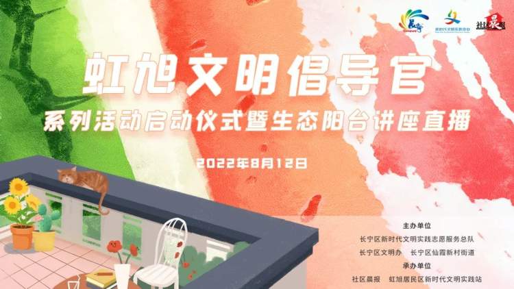 8月12日,一场生态阳台讲座直播正式拉来了活动序幕,10组虹旭的亲子家庭一同参与了活动启动仪式。中共长宁区委宣传部志愿服务(未成年人工作)科副科长蔡昕仪、长宁区仙霞新村街道社区党建办主任林泓、上海市新闻晨报社区传媒有限公司新闻总监盛丰出席活动。活动在“上海社区发布”视频号全程直播,共收获6000人观看,1.5万点赞。