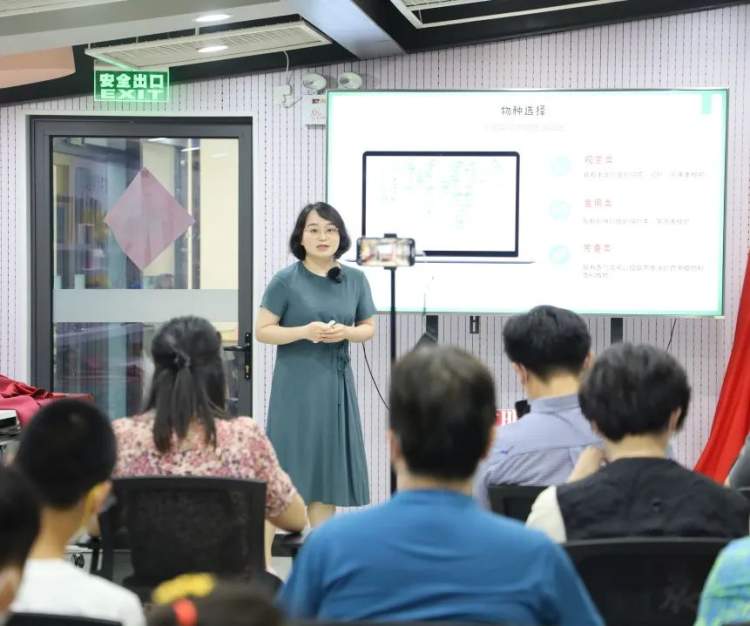 随后,上海自然博物馆(上海科技馆分馆)助理研究员、生态学博士徐珊珊为大家开展主题为《如何打造最美生态阳台》的知识讲座,从生态阳台的特点、物种选择、布景方式、种养技术、自制肥料等方面为大家详细介绍了生态阳台的相关知识。