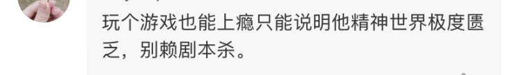 对于小刘的遭遇,很多网友认为,“玩游戏成瘾,要先找自己原因”,剧本杀和其他游戏本质上没什么差别,自己要有自制力。