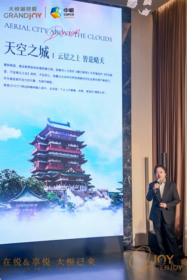 每个时代的向前,都离不开智慧阶层的创新和努力拼搏,而大悦城控股便是实践家。美国CDI国际创意集团国总裁郑灿先生以“宝藏之舟 云帆朝阳”为设计主题进行南昌大悦城设计讲解,透彻剖析南昌大悦城设计灵感、创造理念等独特亮点,在赣江之滨建造两栋超高层的建筑,从六层的商业裙房方向拔地而起。面向公园的一侧,打造层层退台和四季绿庭。同时在建筑外立面装饰了丰富多彩的金属玻璃和石材,这也象征着江西丰富的矿产资源。南昌大悦城是一艘满载宝藏的方舟,可以吸引人们来探索和体验。